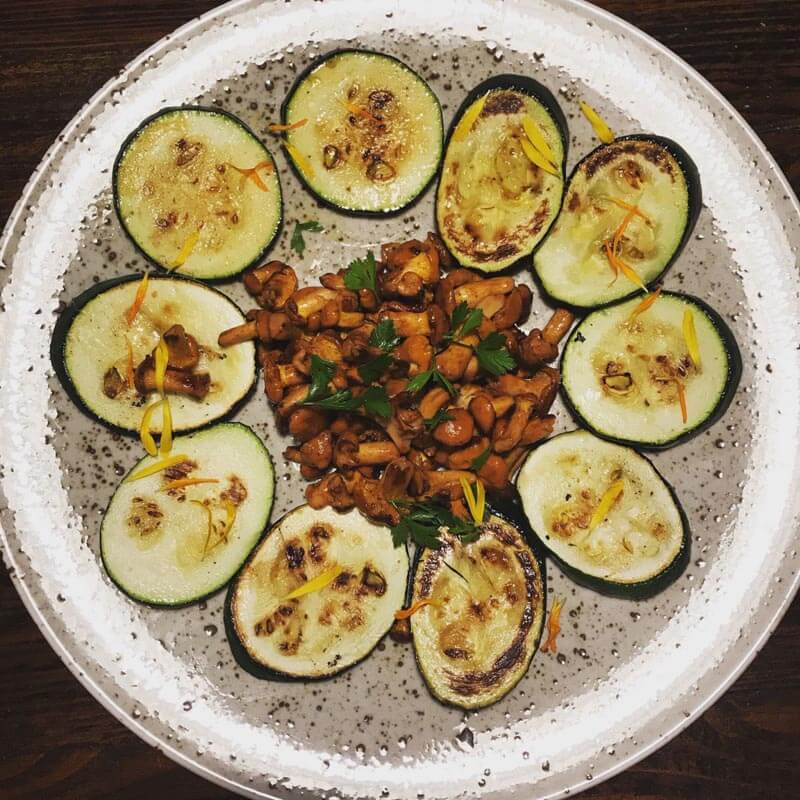 At Kunstelj Inn we know where the most succulent chanterelles grow! We rinse and slice the fragrant chanterelle mushrooms and courgettes, then saute onions in oil, add the chanterelles and courgettes and flash fry them. This results in a simple, quickly prepared dish which, in general, is one of our most popular. The secret is in our special hot plate which enables us to use a small amount of oil at a high temperature to flash fry the dish to ensure the delicate chanterelles are not overcooked. This is especially important when cooking with foods that contain a lot of water, such as mushrooms and courgettes.